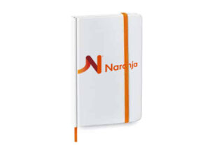 Bloco de notas com capa de toque suave, acabamento em PU e numa vasta gama de cores. Com 100 folhas lisas, elástico e marcador de páginas de tecido, a condizer.